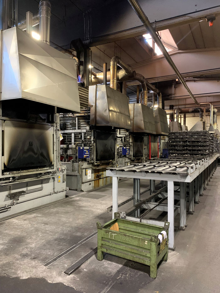 Gli impianti sono di nuova generazione per soddisfare al meglio le esigenze del Cliente per eseguire i seguenti Trattamenti Termici:– BONIFICA ALLUMINIO– SOLUBILIZZAZIONE– INVECCHIAMENTO– RICOTTURA ALLUMINIO.I 2 Forni sono simili e sono provvisti di automatismi per rendere più funzionale e ripetibile il ciclo termico e per ridurre le varianti del processo.